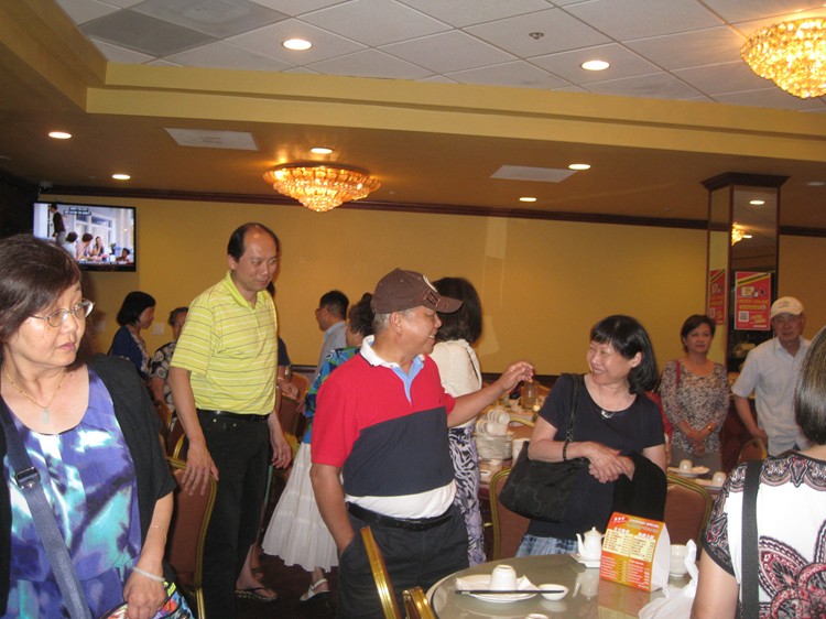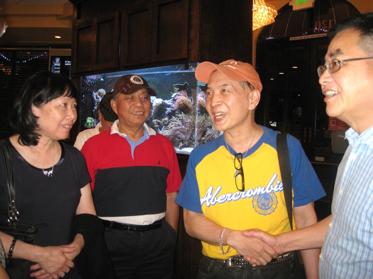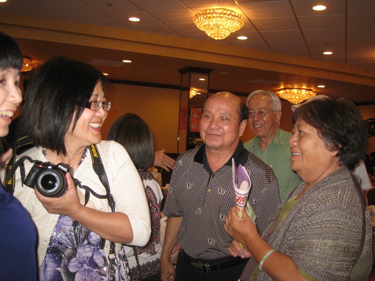 在碧珠家又唱又鬧,到午後四時半左右,我們才分乘两部車來到 Milpitas 市的那家潮州餐館。負責筹辦的黎美顔老師,Pam,璇珠等皆己在入口處,帶着親切的笑顔迎接每一位到來的樹人校友。其中大部份的校友我都叫不出名字,但經過黎老師,Pam 與璇珠的逐一介绍之後,我們多少都可從間接的某某舊識中,東拉西扯地扯上那麽一點關係來,這也許就是當年峴港那『小城故事』的可愛之處吧。親切的寒喧交談聲中,不知覺間早己把原先那份陌生感驅走,取而代之的是鄉音到處此起彼落,彷彿我們都在霎間飛越時空,回到了那失落已久的舊歡歲月裡。