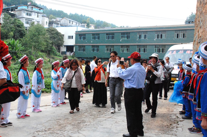 由於山路窄小, 不便大旅車通行, 改用小旅車運載代表團到學校