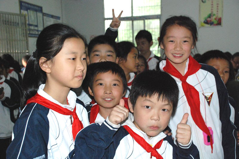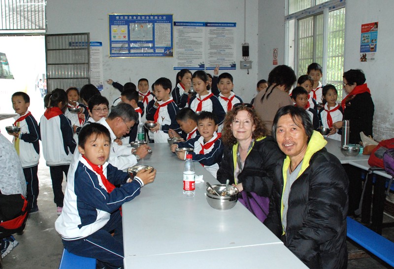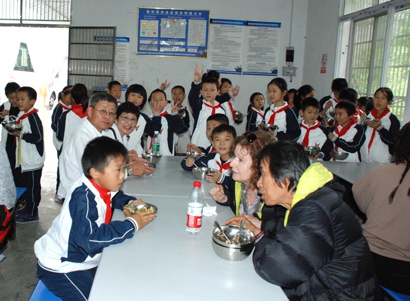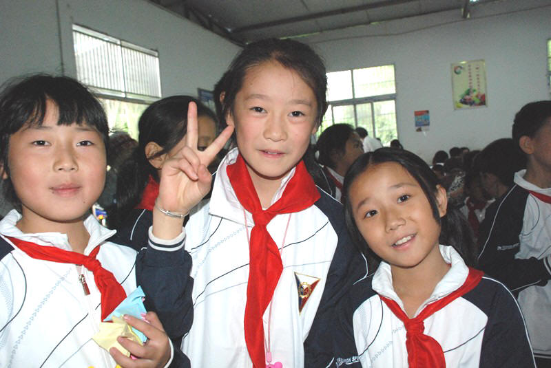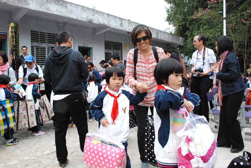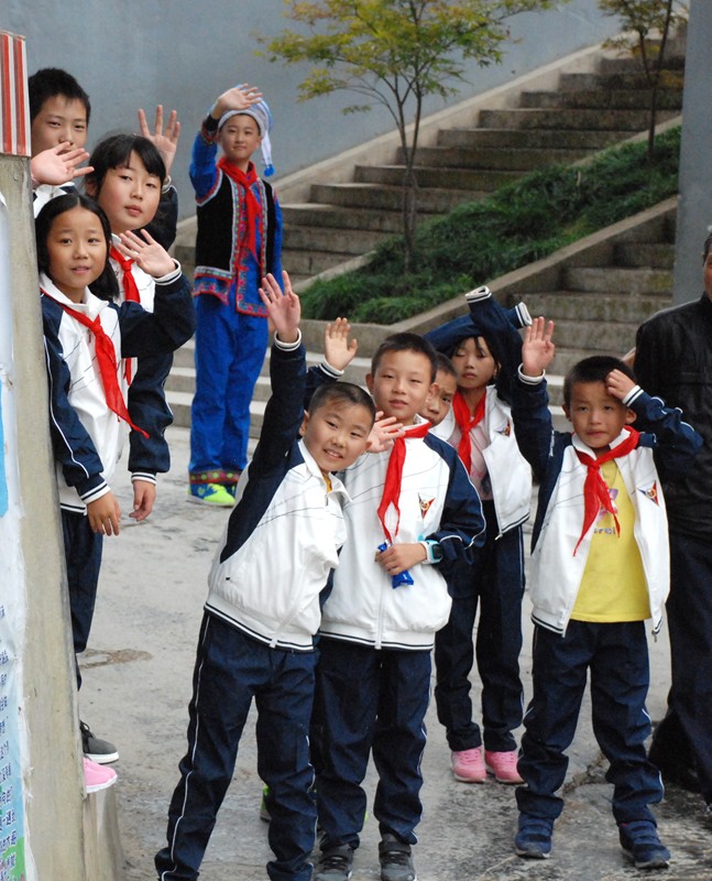 吃完午飯要排隊洗手。因為此處只有一個水龍頭。學生們見到我們就要離開了, 向我們揮手道別。