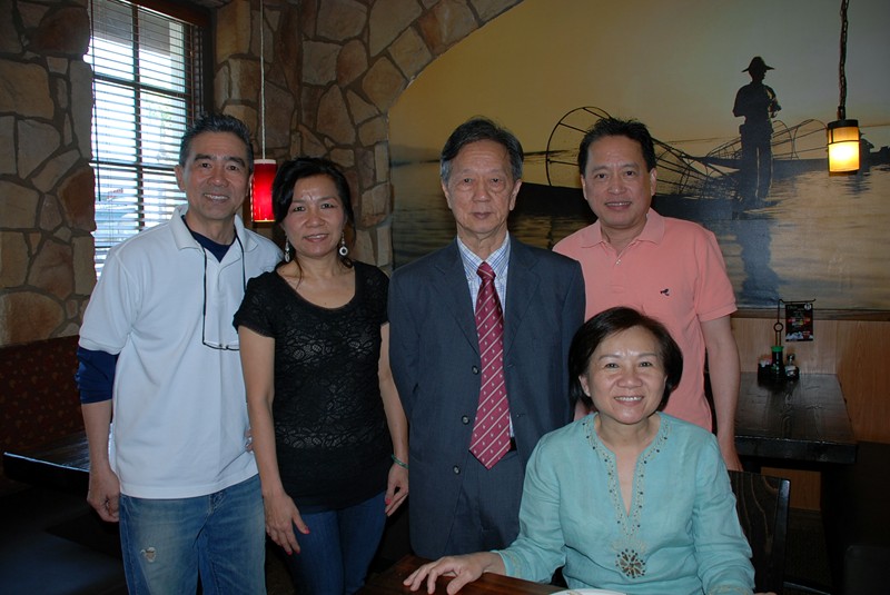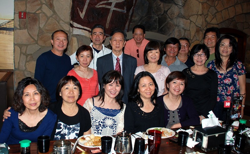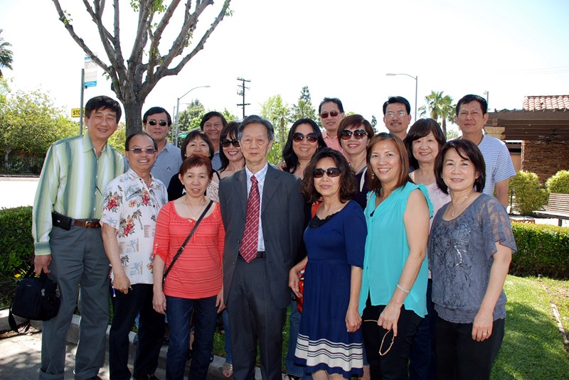 南加州洛杉磯地區峴港樹人校友各班代表聚會, 熱烈歡迎蔡振翔老師首次從香港來美探訪。英社班同學於 4月21日另