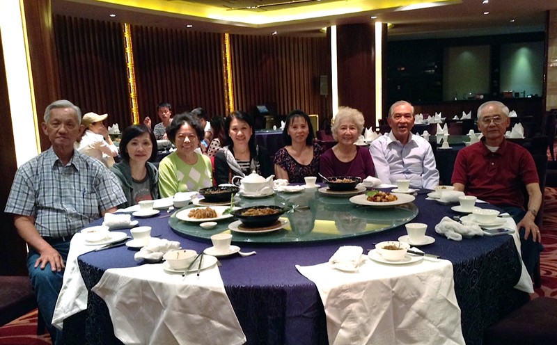 羅世靜,黃紅, xx,黃福生 。 這一餐是黃福生款待久別重逢的老同學老朋友相聚