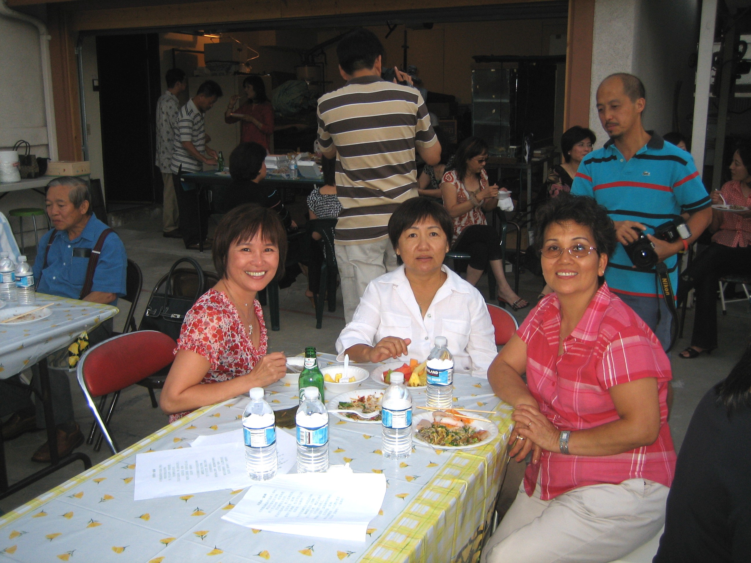迅雷班在樹人校友中是最活躍的一群 , 也是對母校樹人海外網路活動 , 貢獻最大的一群校友 , 他們人才濟濟 , 辦事效率高 , 最難得的是每個迅雷成員 , 都有一顆熱忱的心 , 有人形容這次的聚會 : 有人坐火箭來 , 有人坐飛機來 , 有人坐船來 , 有人騎馬來 , 有人坐三輪車來 , 各種交通工具都有。此次聚會 , 有澳洲和美國各州來的校友 , 有北加州專程來的校友 , 和羅省本地的校友 . 還特地邀請我們兄弟(本網站主持人王永健王永康)參加 , 迅雷網站的 "碧海雲天" 主持人張碧雲也特地從三藩市來參與 , 他們感情融洽 , 非常熱鬧。聚會接近尾聲時 , 迅雷班成員穿上了印有迅雷班標誌的 T-shirts , 唱班歌 "迅雷班一級棒" , 切蛋糕慶祝迅雷網站設立二週年紀念 , 然後盡歡而散。