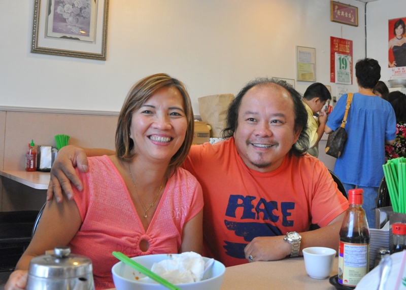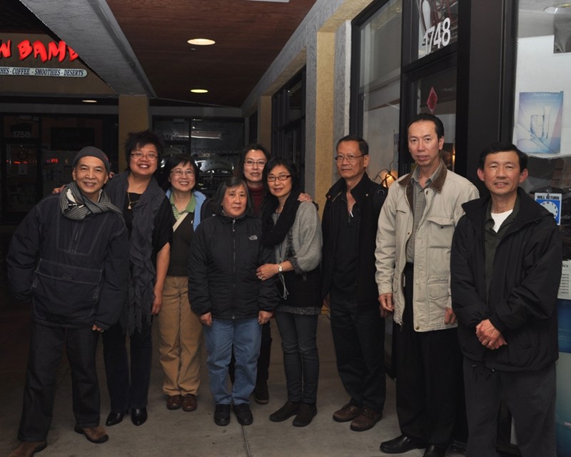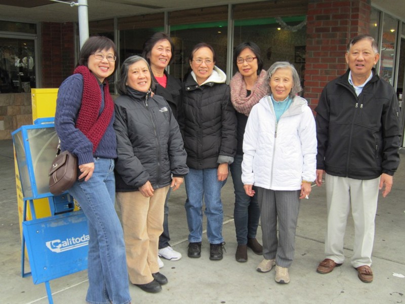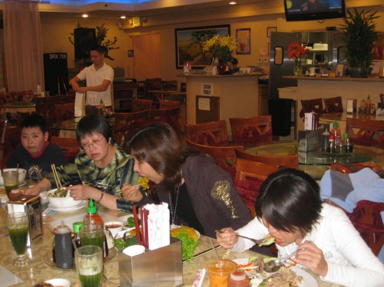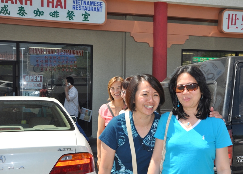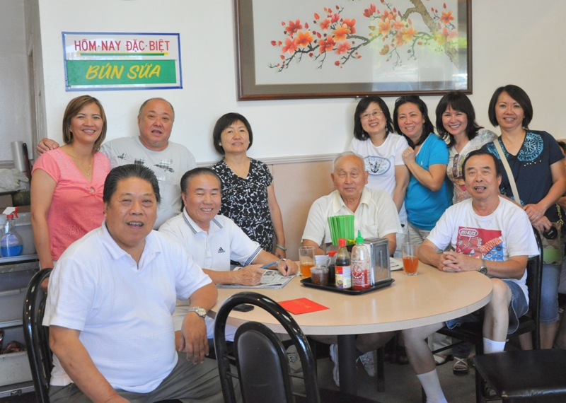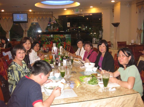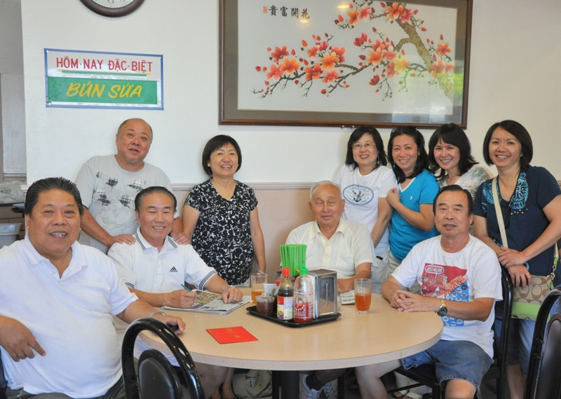李老師請吃越南牛肉粉。 大夥在“金龍”粉店門前合影﹕ 慧屏 佩明 美姿 李師母素玲學姐 曙姮 李佩芳大姐 李富老師