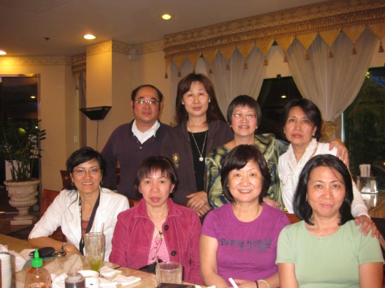 這次為曙姮洗塵的晚宴有我們迅雷班的﹕鄧章群﹐李佩明﹐潘震遠﹐我。還有樹人斌色班的陳年益大哥﹐樹人末代康社班的陳嘉慧(曙姮當年的家教得意門生)﹐和護駕而來的我的鳴遠好友﹕張碧雲。