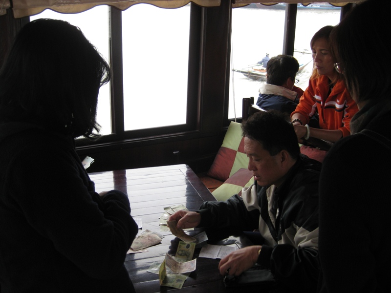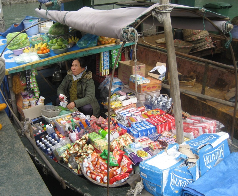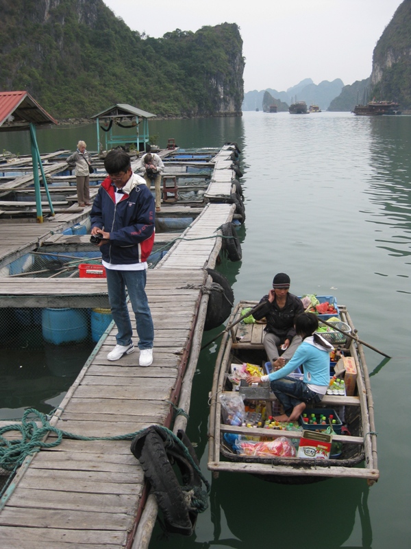 享受下龍灣的迷媚柔美風光幽景。中途船靠一處海上市場, 我們買了些海產為晚餐加料, 價錢當然是不可思議。