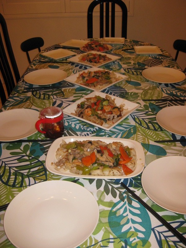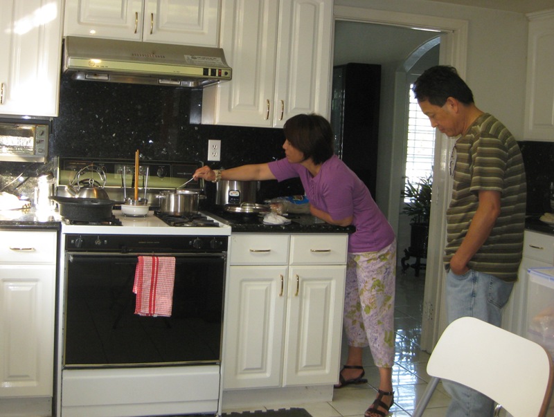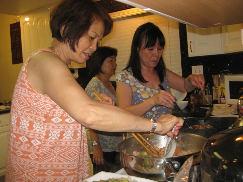 下午2時由韶華開車,大夥兒前往超市採購,返回秀萍家大鬧厨房,在搞笑胡鬧吱喳聲中,二位大厨拿手佳餚呈現在大家面前。