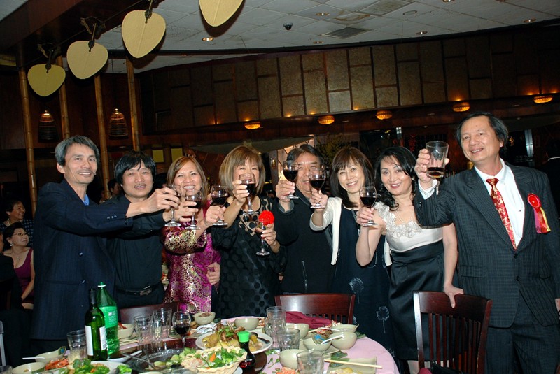 我們再怎麼的忙也會趕去報到。有需要幫忙的地方大家都義不容辭何況有得吃的我們更是“隨叫隨到”。六點入座因為餐廳生意特別的好所以限制顧客最多只能逗留兩個小時。八點我們就被趕了出來﹐大家還是捨不得離開乾脆就在餐館外面談話拍照到晚上九點多才依依不捨的離去。以下是編者相機裡面的照片.....