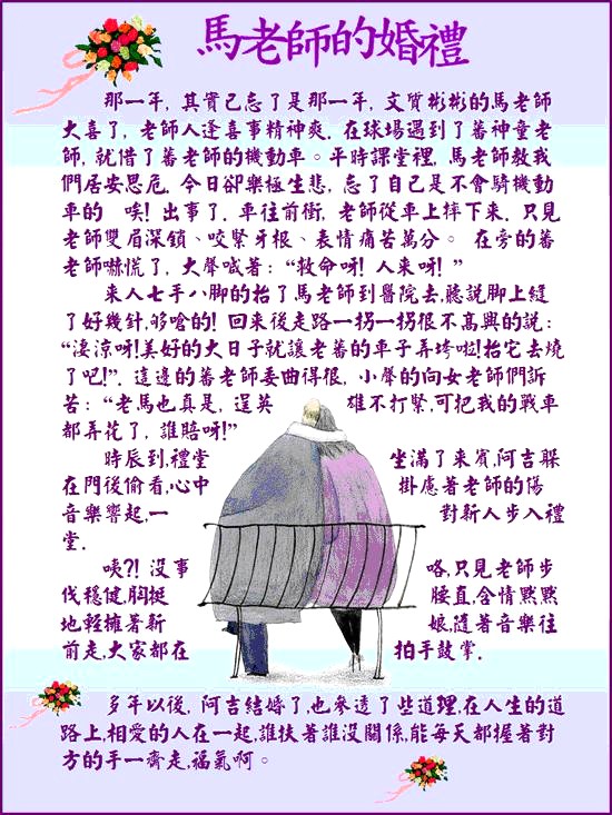 恍惚站了半個世紀 , 濛濛的街角處 , 一個糢糊的身影 , 在斜斜密密的冷風寒雨中蹣跚漸行而來 , 原來大人等的就是他 ,