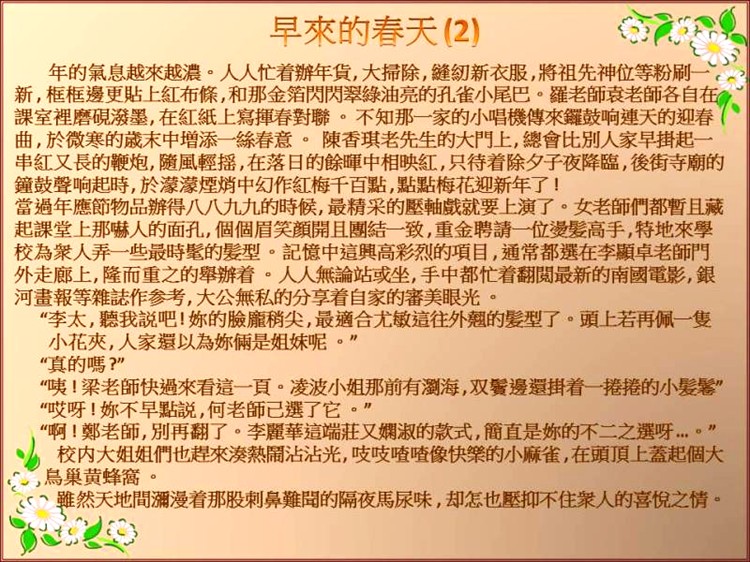 嚇得葉老師窗外枝椏上年年知了的蟬兒 , 整個夏天不再唱歌 .