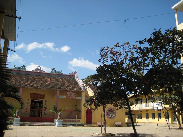 一張滄桑的相片,漫漾著灰黯淡白的圖像色影,那是學校後門口的情景。不曉得照片是哪一年月拍的,室內球場和圖書館、實驗室大樓似未曾建築動土,相片右方是St. phao Lo^`醫院,相片左方有着那棵高大老樹Kien^`Kien^`的枝葉,那是學校後門口的一點蔭涼,大樹旁邊有一間專賣零食、清涼甜品冰品的凍飲便利小店,店名「如意」,並有租借連環漫畫書籍,是大眾校生們的至愛,放學時刻人潮湧擠,生意興隆火紅。