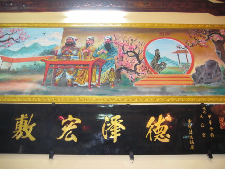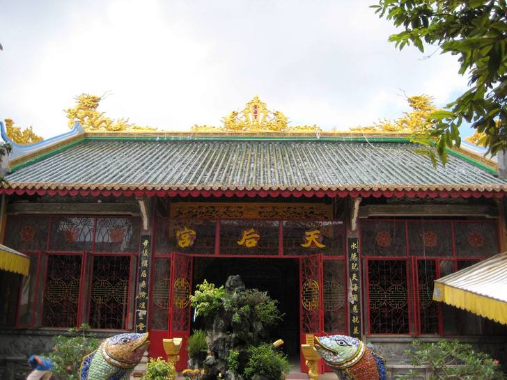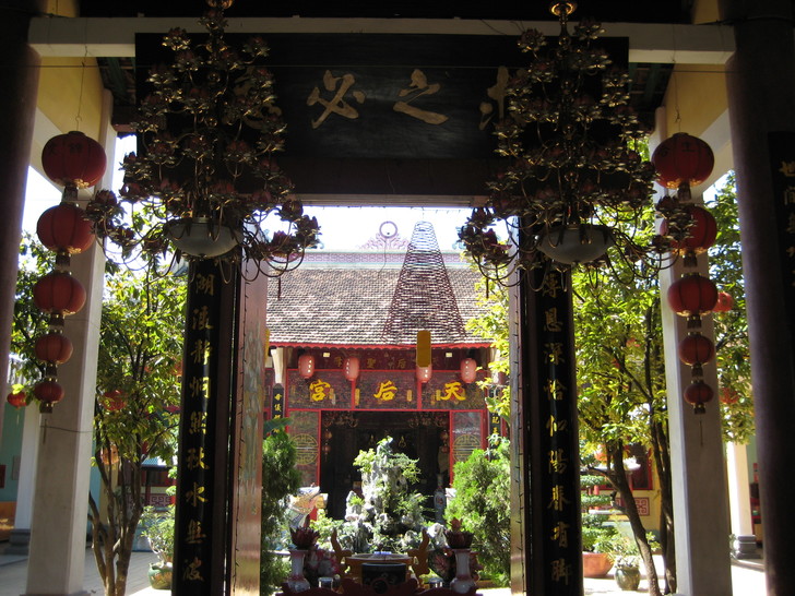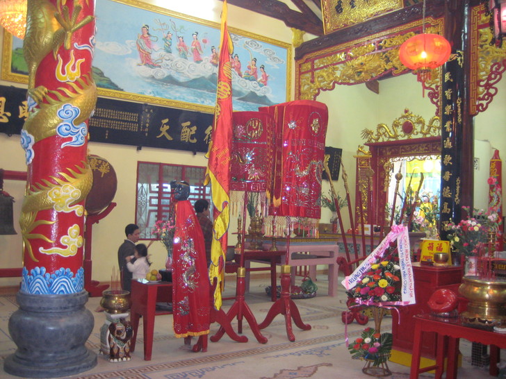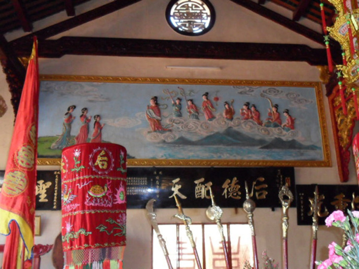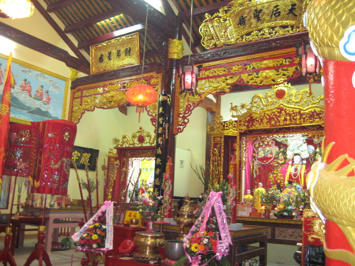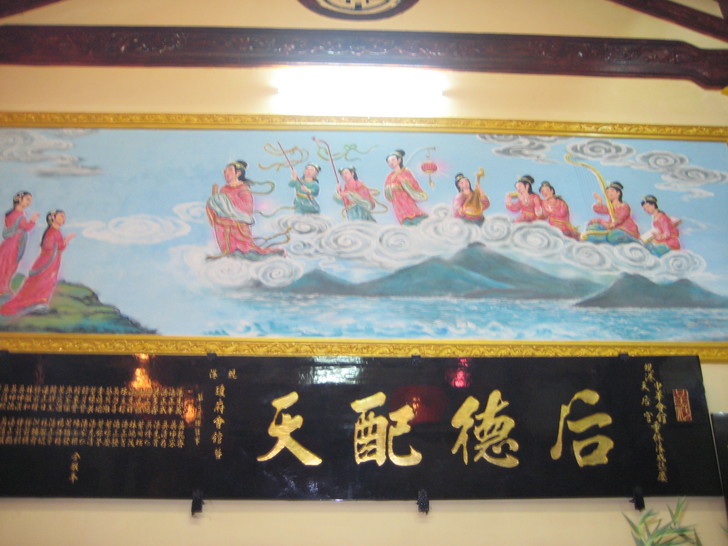 天后宮座於兩幢大樓之間的空矌廣場深處。 「這是我的老學校,裡面有一座廟宇,是祀奉 媽祖。」 「衪是中國東南沿海的神祇,是漁民與南洋華僑心中的海神,也是一種信仰。」 「媽祖又名天仙聖母,天后娘娘,天妃娘娘。。。我們暱稱為阿婆。」 好久沒來過學校了,去年有來過一次,是找〈樹人樓〉側壁〈合作社〉的阿森,關於他那把吉他買賣的事情。