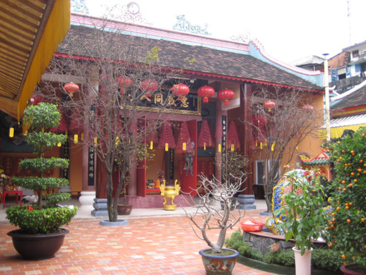 小徑上斜下陡,坡下盡端打橫着是學校前門的徵女王街,過馬路那邊是綠草如茵圍著的座座油庫。小徑轉角有棵粗壯的閻桐樹,越文稱做cay^ Diem^ Dong^`。閻桐樹樹榦佈滿疙瘩小剌,開有絢紅辣椒形聚生小花,果實形圓如橘、脆硬如堅果,內多粒片瓣果肉,彎月虎牙形狀,樹葉巴掌般大小,葉子如菩提葉呈完美心臟形,連接莖柄處有兩粒微小芽瘤,人謂鬼眼,閻桐樹陰氣森重,故一直來都相傳為鬼樹。樹下有間簡陋的棺材舖,棺材舖永遠都擺著三兩副棺木於外。小妹駭怕那個街角,囝仔為了停止她的哭泣,而以為此嚇唬胆小的小妹,她反而哭得更兇,到現在回想都一直於心不忍、心中充滿歉意。