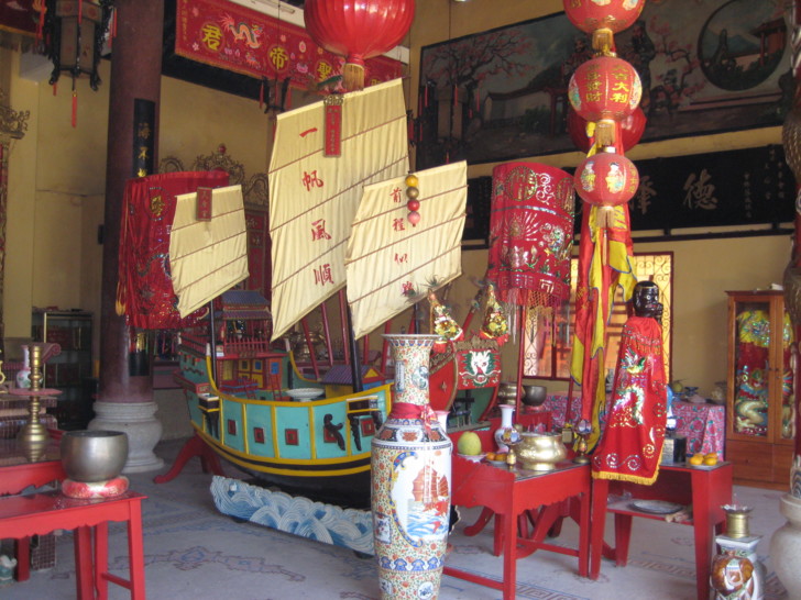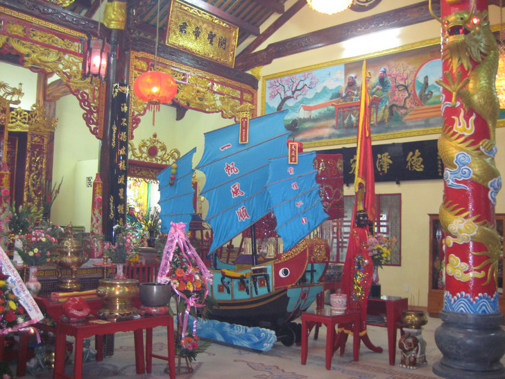 今天大地起風,河水匆匆湍流,沒了往時那般悠閒淌流,水中充滿着上遊漂流下來的泥濘朽木沙土,使河水看來暗淡渾濁,如天邊烏沉的陰霾。 水流急故水面有浪,灰白的浪花朶朶互相恣意追逐,潮水高漲,比往時混沌得多。從各處窪地水田溝淙的水葫蘆,水草,水生植物被急流拖拽拉扯漂浮出來,匯集在橋頭土墩子下的河角灣塘,無浪區中白茫茫的蘆花隨風搖晃,層層水草縈繞其間,枯枝殘葉堆積於緩衝坳窪。 這是寒江被遺忘的河坳一處,一大片浮沙淤積沙洲,生滿綠色植被形成避風堤壩,在新春謐靜的流光中悄悄開著滿地白色的小花。每一年的漫天飛絮和海風吹來的海沙無處不在,稍遠前左方是跨越河水的 De Lattre 鐵橋,世代悠忽天地中。 千萬浮萍盪漾隨波起伏,綠了一灣春水,隨波深情弄青影。 破落的小廟孤伶座於一片茅草河灘上,民俗樣式渾樸風格,古老瓦片土木工程,建築年代不詳。頂蓋瓦隙間滋生着三兩棵小榕樹幼苗和根盤瓦頂一角的小菩提樹,於青苔地衣之間綠蘚根鬚糾蔓,是飛鳥無意中移花弄木的播生。 廟前門檻己殘破不全,面無遮攔,橫樑塵土附凝,牆上佈滿霉黯斑影。細白海沙堆積於沿邊牆角,是從南中國海隨風飄蕩過來的沙子,其間帶着數枝枯黄松針葉。 小廟俗稱〈魚公廟〉,只因此廟為祀奉一具魚公骸骨。 魚公就是鯨魚,鯨魚在沿海漁民有若神明地位,亦可說鯨魚是漁民的海神,鯨魚活在漁民的心中,也活在大海的神話中。 東海傳說中的漁船遇上暴風雨時魚公就會來相助,它以巨大的頭部和背脊,强而有力的身軀頂著漁船,牵引拱托入近海安全地區。 有一個古老迷人的傳說: 三百年前的南越王阮映和光中山西政權爭天下時,有一次被打敗而逃亡躲避於昆島和富國,曾幾番求救於暹羅。若干日子阮映恢復原氣,養精蓄銳,捲土重來,與山西政權再次决戰於Binh`Thuan 平順城。 阮映出兵圍城並佔居上風,悄後從平定Binh`Dinh. 趕來的援軍使山西政權轉敗為勝。阮映軍隊被殺得落花流水。大勢己失,阮映帶着殘兵殺出一條血路,驅船往南方水上逃亡,山西政權精兵於後窮追不捨。前面江口出海處卻巨浪滔天,一場暴風雨正來臨,阮映惟有祈願求救於蒼天。 霎時從海中浮出鯨魚一雙,各左右夾穩船舷兩側,山西政權追兵船艇在暴風雨的蹂躪中全軍覆沒,雙鯨則挾送阮映殘船平安到達岸邊。昔日阮映登岸之灘地屬VàmLáng村, Kiểng Phước 縣Gò Công 省。1802年阮映打下半壁江山,稱帝嘉隆,心中念念不忘雙鯨之恩情,封鯨魚為神魚,至紹冶朝代奉封為南海大將軍,世代流傳下去。 以至有那麼的一天,一隻迷途的小魚公從南中國海誤入峴港灣,又不知怎的越過仙沙港口的淡水線,拐入白騰河。徘徊流連於河中,最後溯江而上,遊過鄭明世鐵橋後,擱淺死在對灘沙洲上。 「就是在我們對面長滿沙葛木薯的那片河灘。」 「人們為了紀念感恩鯨魚,把收集所有的骸骨裝在一副鮮紅如血的長方形棺材,棺木擺放在小廟的廳中,並有水泥砌成的簡樸祭台石鼎,享有人間香火。」 小廟的破落己有一段日子,上一次和友人來時於仲夏三伏天,看到廟前那股清涼綠水,心中早就蠢蠢欲動。順手按下單車後輪的箝鎖,脫下襯衫長褲,綁紮於單車上,就一頭栽進那陣涼沁透人心脾的清涼河水。 魚公廟前那河灘的水沒有半粒沙子,不很清澈的水下儘是淤泥,少許水生植物。赤脚下是凍涼的鬆軟泥濘,每一腳踏下都深陷七、八公分,那泥濘還吸緊住腳底板不放,感覺極之不舒服。 不像在順化靈母寺前面香河的淺灘,水草藻類叢叢蔥綠沙礫中,河牀下還有些滑潺卵石,魚群穿梭暢遊其間。老家大小河川的河水,都有着相同的甘甜。 淌過了鄭明世鐵橋的水味道就不一樣,鐵橋那一邊的河水帶有灣區的淡鹹味道。正如清平海灘的海水,和隔著山苶半島的美溪海灘海水味道不一樣,外灘烟海大洋來的水鹹得多。 「似妳的眼淚一樣鹹。」 「你怎樣知道我的眼淚像大海一樣的鹹?」風中的輕聲細語。 「妳感傷時的淚水有大海的味道。」 不管是妳眼中的淚水,美溪面對深海大洋多浪的惡水,或是港灣中靜流的柔水。雖然不一樣的味道,但都一樣親切有情。 小廟座落於常人罕至的溼地,平時只有一些牧童和他們的水牛嬉水。往日的香火己絕,頂塌破洞一角,荒蕪的廳堂只嗅得潮溼霉黯氣息,點點塵埃在陰沈光影中飄浮,棺木倒歪斜移,陰森白骨散落一地。只見一條條長短不齊的肋骨和己一堆脊椎骨,比一般的牛骨粗大得多,在歲月顯現出那抹滄桑曖昧的慘灰。 上初中時候曾畫過鯨,從學校的圖書館裡搜索一切鯨的寫真,曾一度沉迷、喜愛鯨類一族在深藍水冷中的神祕,傲然自得悠然暢遊四海。 如今依然神往鯨類那些傳奇,抹香鯨的龍涎香,求偶時座頭鯨低吟之鯨歌鯨語,鯨語雖只有三兩個單音,卻和諧般迴盪在充滿生命力的海洋深處。 「怎麼會搞成這樣呢?」小女孩忿忿然的婉惜。 「從來沒人會去侵犯一座魚公廟,一座神廟。」小男孩不解的搔著凌亂的長髮。 該是坊社幹部他們對小廟的破壞,裡外被砸搗得一塌糊塗。那幾年不學無術的小弟們學上面的老大哥〝破四舊〞(破除舊思想,舊文化,舊風俗,舊習慣。)而對民間的神竈廟宇砸個稀爛不曾手軟,他們還大言不慚說是破除迷信,提倡人民的清新意識,教育群衆;表面上是領導群衆,骨子裡唯我獨尊,順我者昌。 「噯,幫幫忙,把骨頭擺回棺材裡面...」男孩燃起稍早從天后宮阿婆討來的香炷,整束插