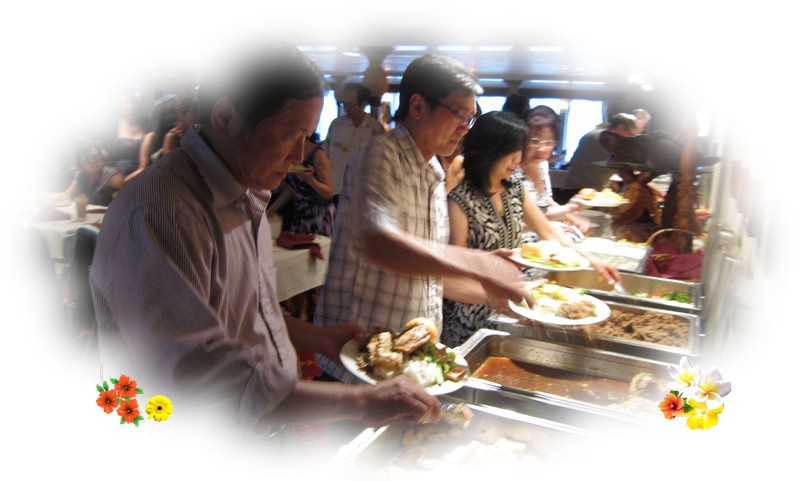 我們將上船享用晚餐與船上給我們準備的節目: 王永健、施英敏、黃漢璋、施英嫣、吳月秋、施英媚、黃漢麟、羅麗萍、張淑美、劉慶和、鄭耀剛、韓江光