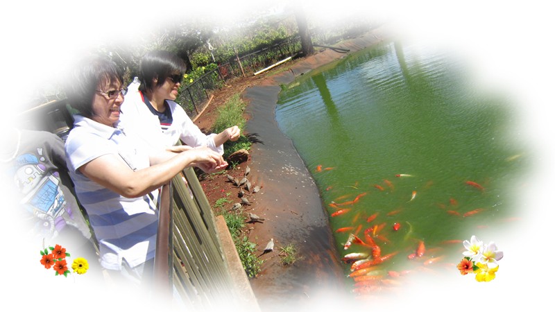 湖邊餵魚