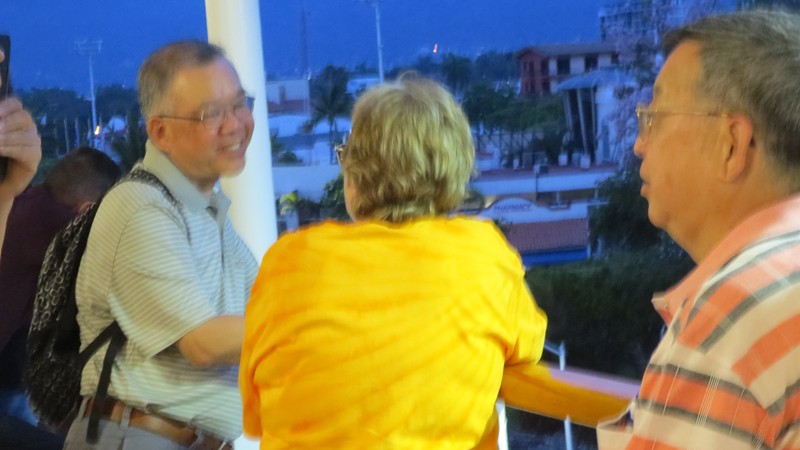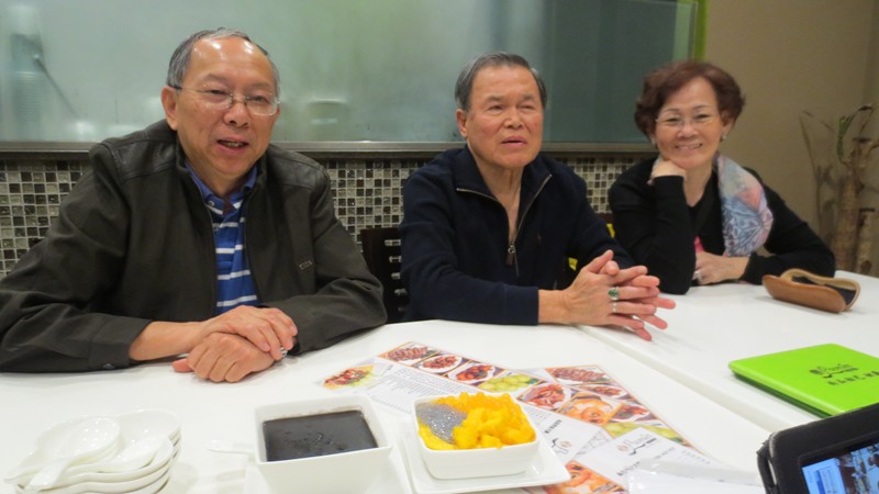 1 二零一五年四月七日,首天聚會於越南飧厅,曾瑞瓊当晚另有约會,怱怱進來打个招呼,和朱景光,張麗桃耒張合照。