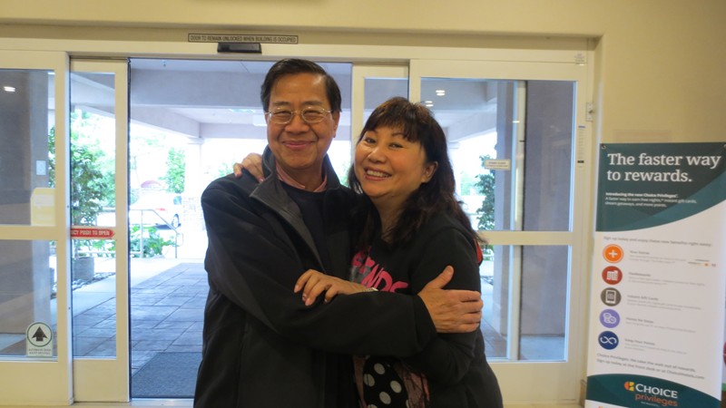 49 Kim (秀華姐姐的女婿),也是一早來送行,林露瑩和 Pauline趕快拍照留念。