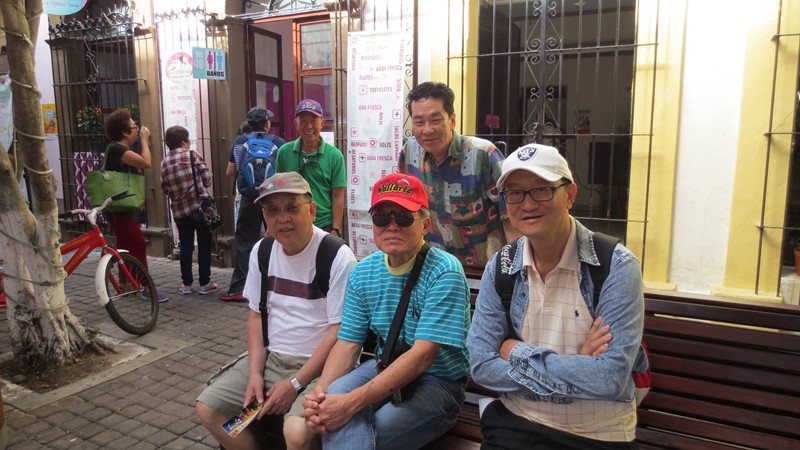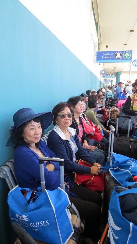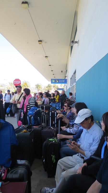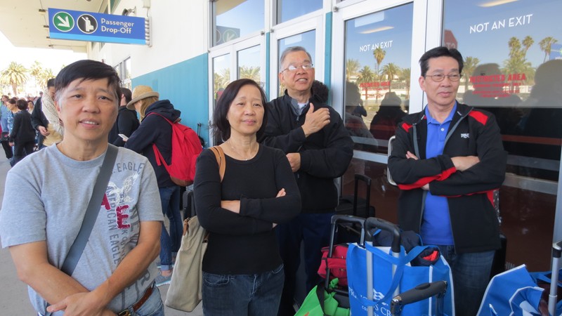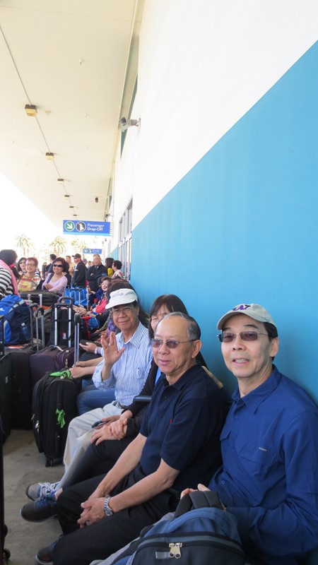 219 四月十六日清晨,遊船返回LA,李秀容,李秀杏,鄭國基,曾錦賢在等候回程巴士!