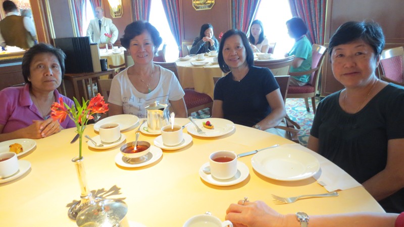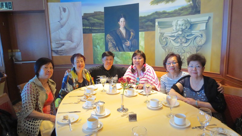 除了陸錦芬,吳永剛,畢婉玲和Phil,韓連美,朱景光,欧楷泉,貴賓畢翼陞師兄和太太,都精神奕奕,其它却面带倦容,佳因大清早下船,没有休息,黄昏六点就趕來参加聚會,重友重情重義,实在感動!