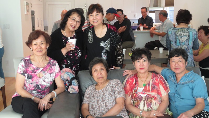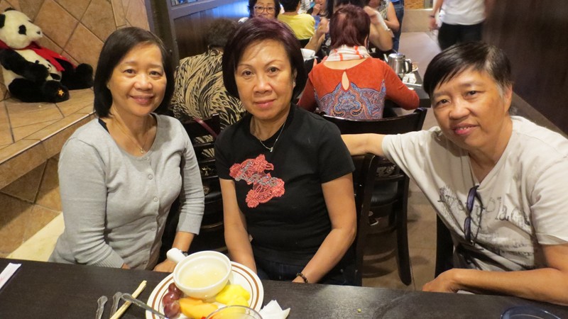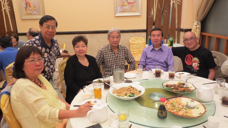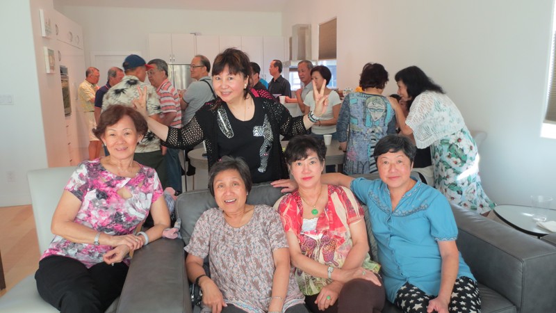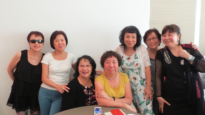 196 曾锦賢和張麗桃,潘藍茵這兩位老友記來張合照,機會難逢。後面穿黃色花的美女是 Pauline ,坐着的秀華姐正在考虑何去何從?