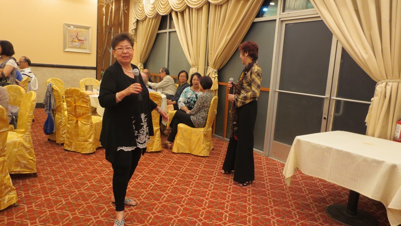 233 吳永剛和畢翼陞師兄在談當年,畢婉玲和林露瑩在巴黎見过面,時隔多年在LA重遇,当然有說不盡的話,畢太太臉带笑容在欣賞張麗桃的歌声!