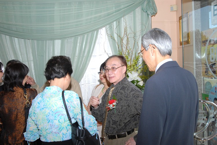 #85 69年畢業校友張麗桃朱景光伉儷向梁景輝老師問候。旁邊是廖錦雲老師與謝燕媚(69年畢業生)