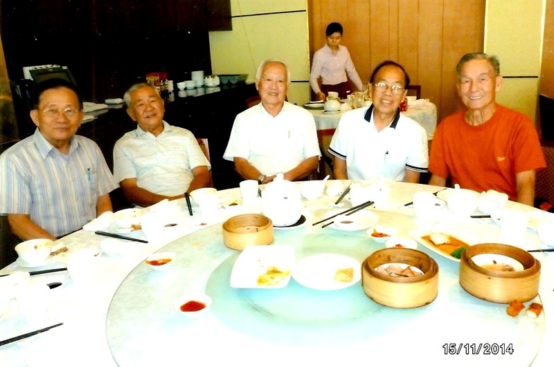 2014年11月15日,梁景輝老師在越南堤岸與四位知用校友早茗時合照。左1沈雄洲先生(曾慧珠老師夫婿)既是知用校友,也是啓智62年理科第一屆畢業班校友。