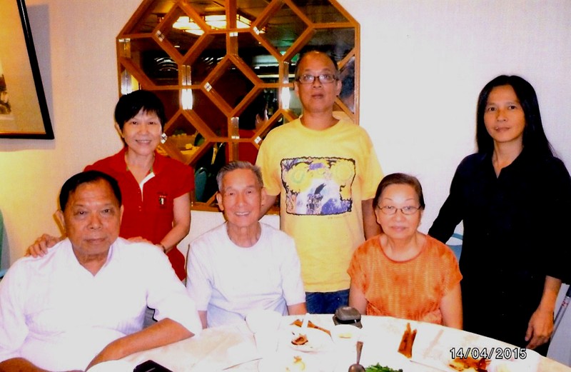 2016年4月3日,梁景輝老師和師母在堤岸賽瓊林酒樓用餐的時候,巧遇從美國而來的啟智門生葉芬(第一排右一)以及其親友。