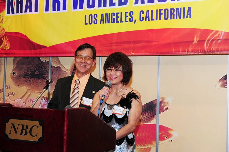 #73 兩位非常勝任的晚會金牌司儀:姚福照(72年理科)、廖建珍(76年),談笑風生。