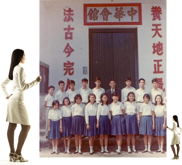 一九六六年(二月)初中第十七屆畢業班力行社 前排:陳英屏、杜聯端、詹佩喜、洪艷、郭寶珠、陳娥、陳妹、陳健、潘彩蓮 後排:鄭金鑾、魏國華、許家兆、劉慶祥、陳家勵、袁檳老師、朱仕鵬、郭春清、陳啟章