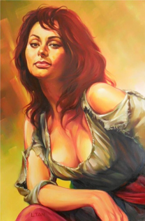 憑〈戰地两女性〉成為奥斯卡史上首位外語片影后,從影主演超過八十部影片,1991年受美國演藝院致敬,獲得「終身成就獎」的意大利演員。 她曾被選為世界上最具「自然美」的女人。演技被演藝界推崇為「影后中的影后」。許多影展大宴會,她出現,所有明星都得退位,受全塲人尊敬。 (繪電影看板幾十年,我選她是最易畫的明星臉;四方口面,大眼睛,勾鼻,闊嘴唇,甚有特徵,祗需兩三筆,就似蘇菲亞‧羅蘭)。