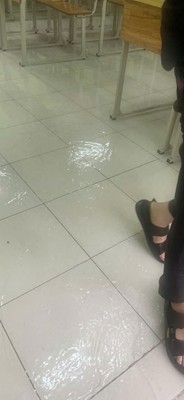 課堂裡積滿了雨水!
