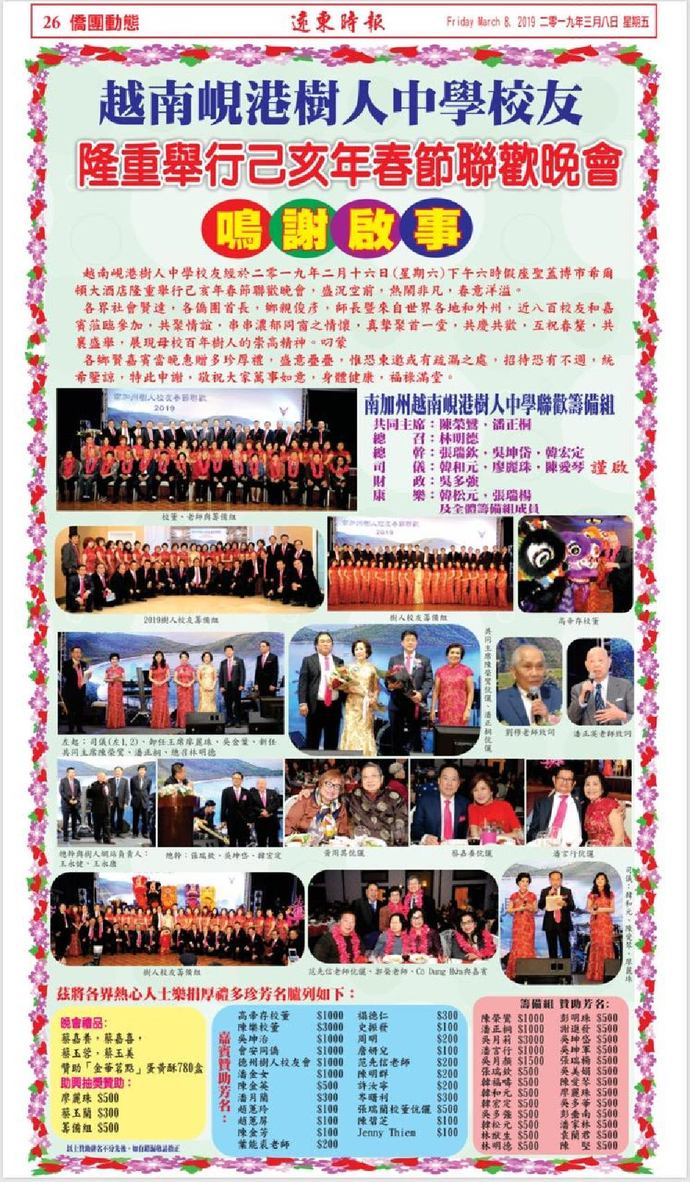 B D Foundation。在基金會的慷慨贊助下,我們獲得了一筆資金,通過校友會的熱心配合,於四月三十日,選在峴港「海南會館」