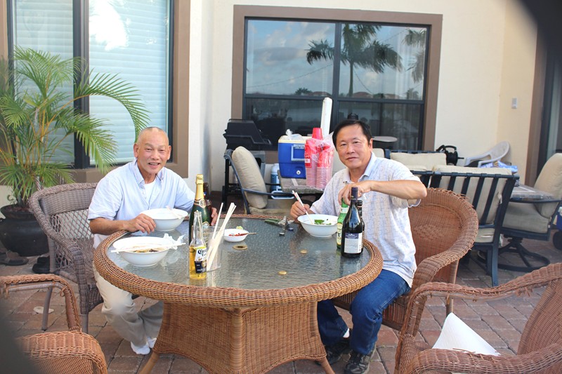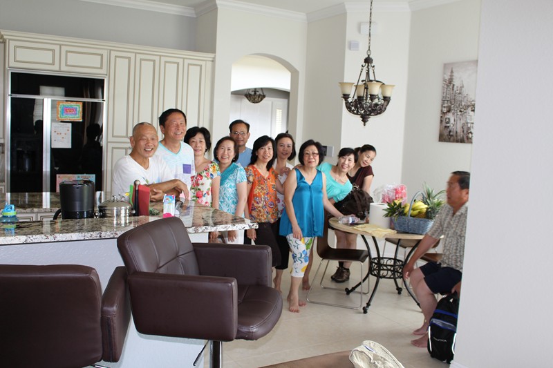2013年8月17日我們一行廿六人分別由洛杉磯、聖地牙哥、與三藩市搭機到邁阿密會合,我們早已在網上訂租四輛七座位的小貨車,到達邁阿密機場時拿車,開到李廣茂兄與葉茵萍姐給我們安排的住處去。此地環境幽美,後院有一個小湖,還有游泳池,給我們安排的兩間大屋子後園相連,出入非常方便。以下的圖片讓我們看到主人的特意安排與好客之道。