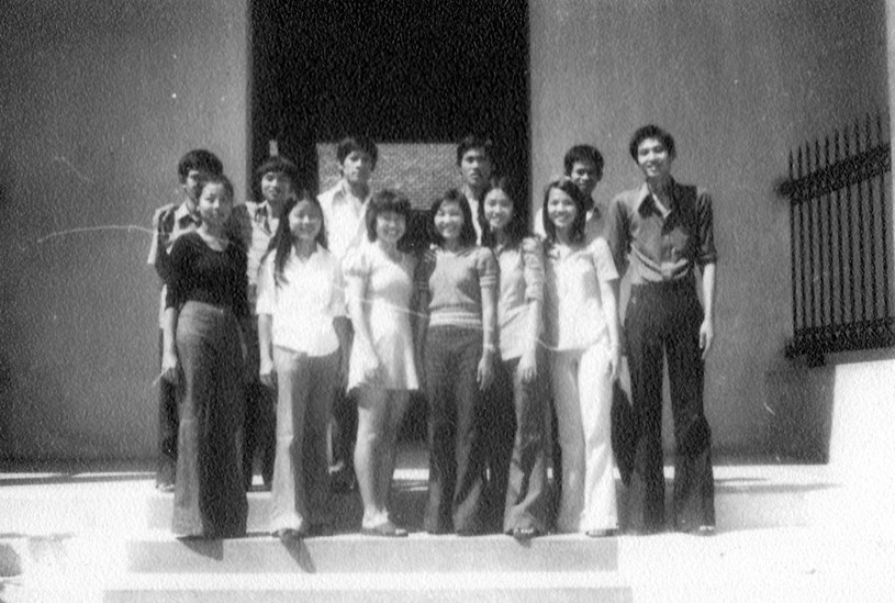 在西貢等待機期出國。左排前起:老亮祿 羅麗萍 杜美鈺 王永健。右排前起:王永康 老亮瑩 張淑麗 禤友雪 張淑美 阮岳洋