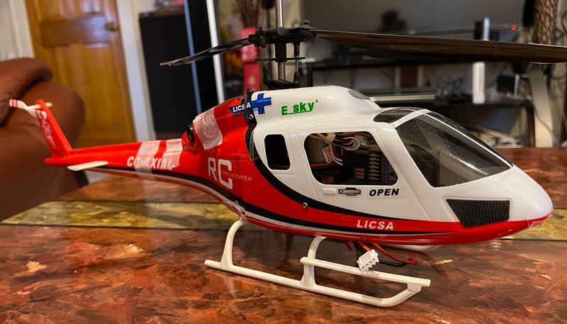 直升機並不是一般人想像那樣容易控制飛行。看機殼就知道我把它摔了不知多少次了!螺旋槳刮破換了好幾次。只剩下一片,
