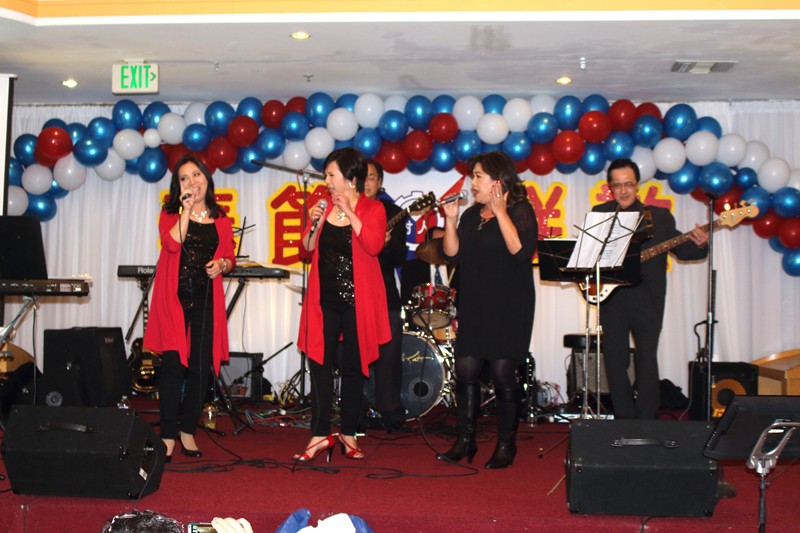 南加州來的樹人校友樂隊:李韶華、潘小嬌、韓克疇太太、鼓手韓克疇、吉他手潘正明