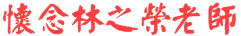 林老師小時與雙親及弟弟的合照 林老師童年照 林老師年輕照 林老師年輕照 林老師年輕照 林老師伉儷 林老師與第一個孩子問世 林老師全家福 在樹人時的陳老師 林老師年輕照 林老師伉儷結為連理之大喜日子 林老師伉儷結為連理之大喜日子 林老師是樹人校隊的籃球健將 左一葉能裘老師 左三林之榮老師 林老師是樹人校隊的籃球健將 林老師上籃英姿 左一林老師 左二葉能裘老師 左七李武光老師 籃球友誼賽 右二林之榮老師 林師母 XXX 鄭玉蘭老師 林之榮老師 林老師與孩子們於老家門前、林記洒家、合照 隔壁是廣生餅家 林家祖孫三代 林老師是一位虔誠的信徒 受洗日 野餐 林老師伉儷與小輩們合影 這是林老師全家離越前在新山一機場留影 林老師伉儷情深 林老師畢業於神學院 林老師畢業於神學院 林老師畢業於神學院 林老師全家福 林老師於追悼會上 林老師伉儷 林老師伉儷情深 背景是台北 101 大廈 林老師伉儷情深 林老師與孫兒 林老師伉儷情深 林老師伉儷情深 攝於洛杉磯環球影城 林老師伉儷與女兒林蓁蓁合影 林老師伉儷與大女兒及孫兒們合影 林老師伉儷與兩位千金合影 林老師伉儷情深 林老師是我們心中的良師益友 攝於中國雲南 2006 年 林老師是我們心中的良師益友 中國雲南石林前合影 已成 "絕唱" 林老師 我們永遠的懷念您