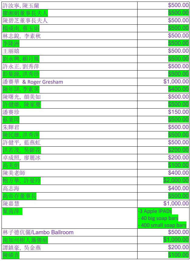 Donation List 2020