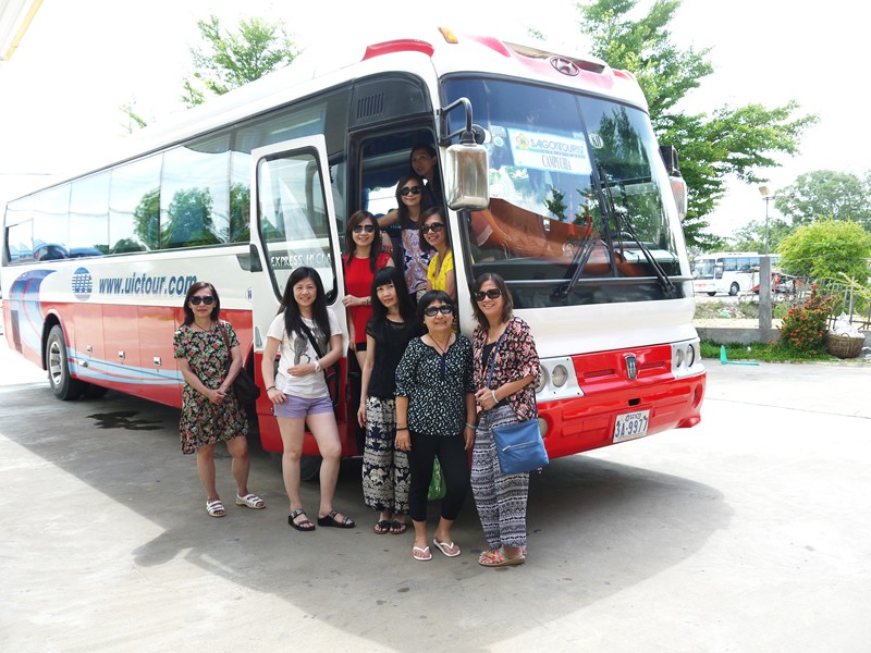 我們一群十五人乘坐這大巴士去柬埔寨。通過西寧省進入柬境內, 沿一號國路直奔古都 Siem Reap