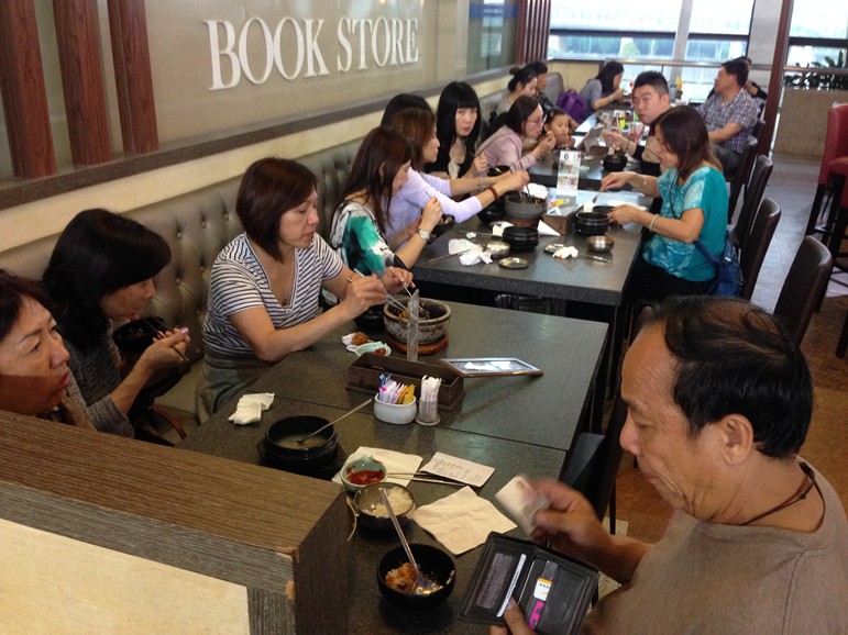 上海浦東機場看來比洛城的 LAX 還大。中轉期間我們在旅客廰享用韓式料理的豆腐湯。奇怪的是韓店接受美金, 星巴克咖啡店反而只接受人民幣和信用卡!