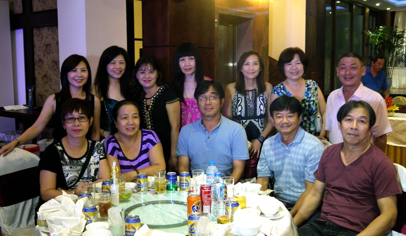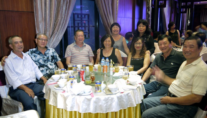 阿平學長(潘英平?) 在他300號餐館請客。右邊者:杜亨民 和 現任天后宮理事會的蔡偉堂會長。 在我離開峴港的前一天, 蔡會長通過杜亨民(我的英社同學) 與我私下交談有關重修樹人母校事宜。我們相互建立了直接通訊的管道。