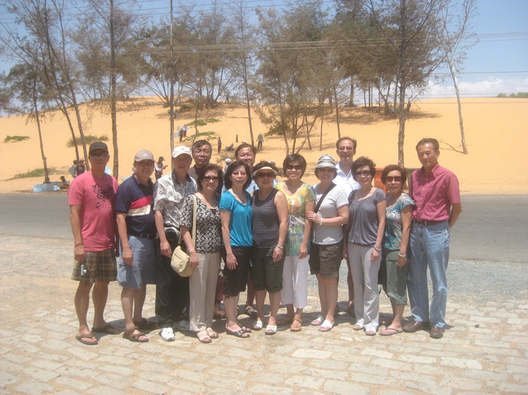 離Mủi Né不遠的一個沙丘:街對面的沙丘腳,站著許多小孩子,手中拿著一兩塊塑膠板,出租給游客從沙丘上滑下來,由于能賺一點錢,有些當地的父母要孩子停學去賺錢,曾引起當地父老對此事的關切。