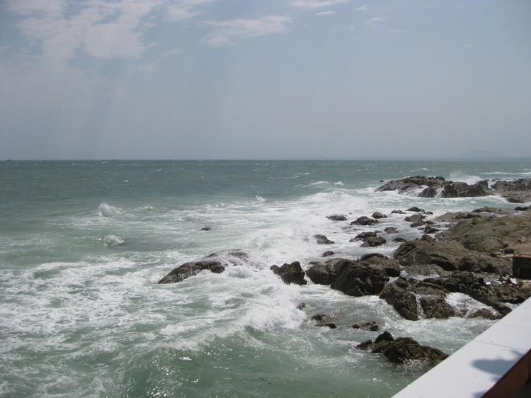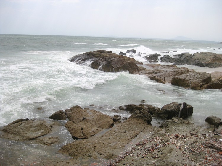 水浸到膝頭,大浪來時過肩膀,還把你拉出去,因此無人敢在深水處游泳,大家都在淺水處玩水而已。