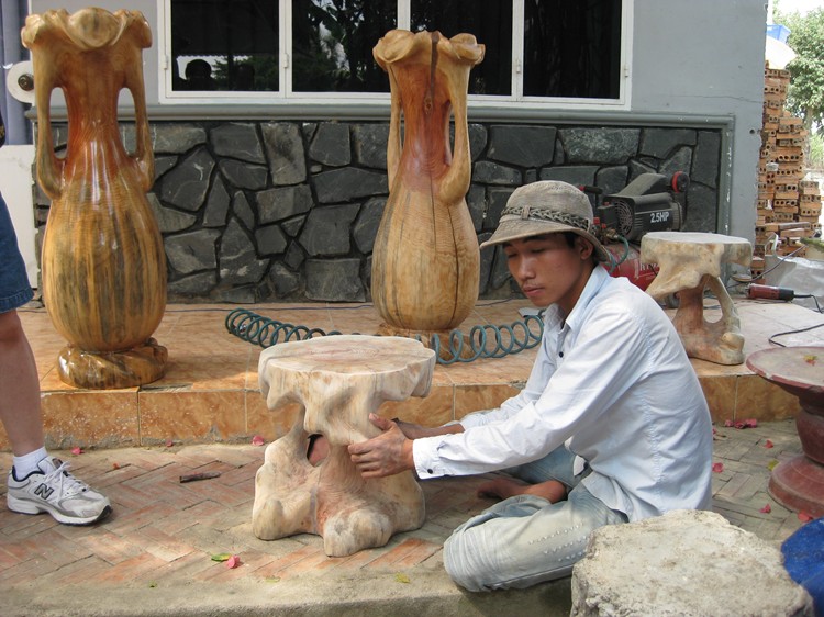在到Mủi Né的路途上、在休息處所擺動藝術品。