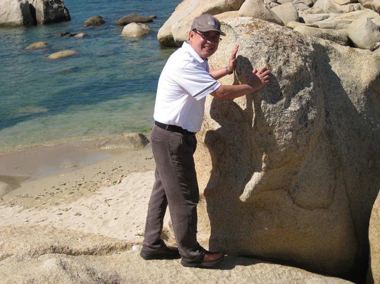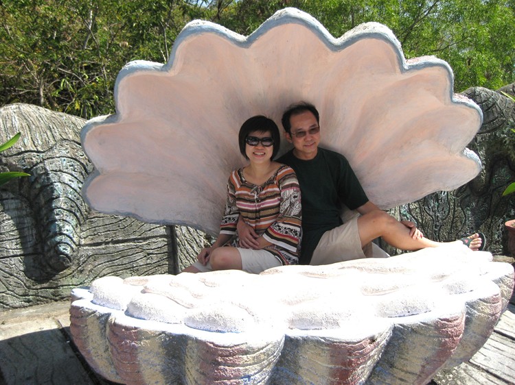 觀世音菩薩都是坐在蓮花上的,而芽莊的笑佛則坐在蚌殼裡。