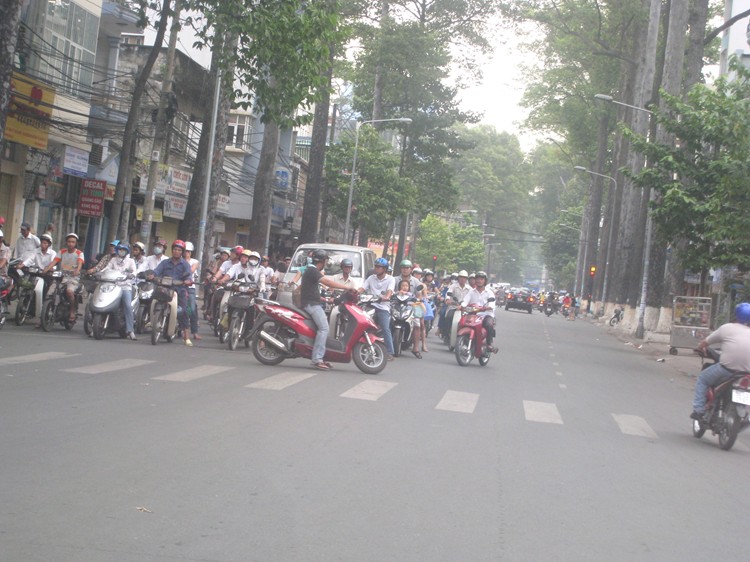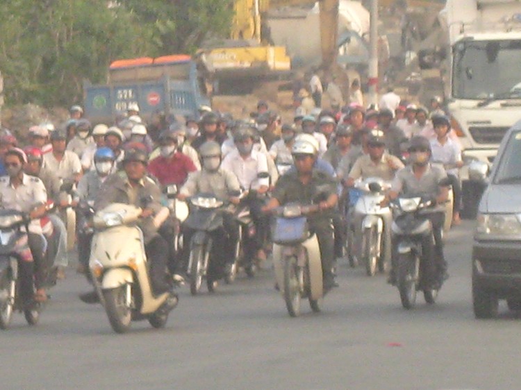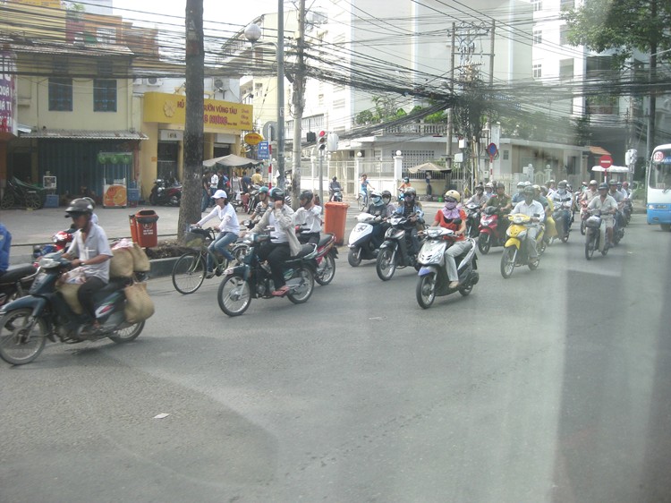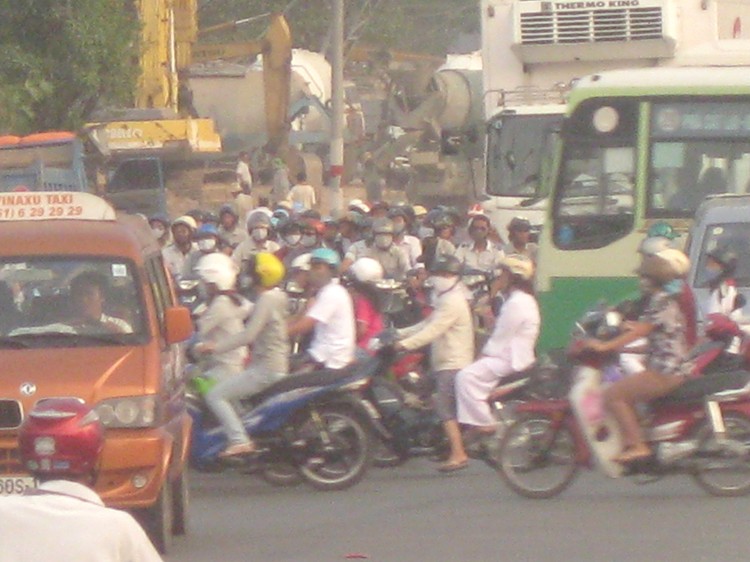 巴士到了西貢的郊區,導遊告訴我們:如果你還沒見過塞車,你還沒到過西貢。