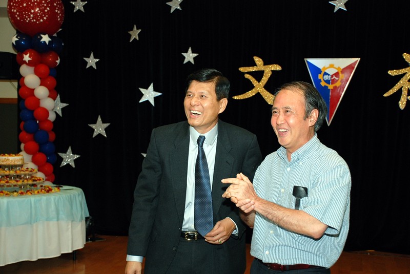 潘正興那麼高興和舊同學握手談笑也是晚會奇景之一。 文社班同學的精誠團結和友情的背景是可據的, 班主任葉能裘老師扮演著超