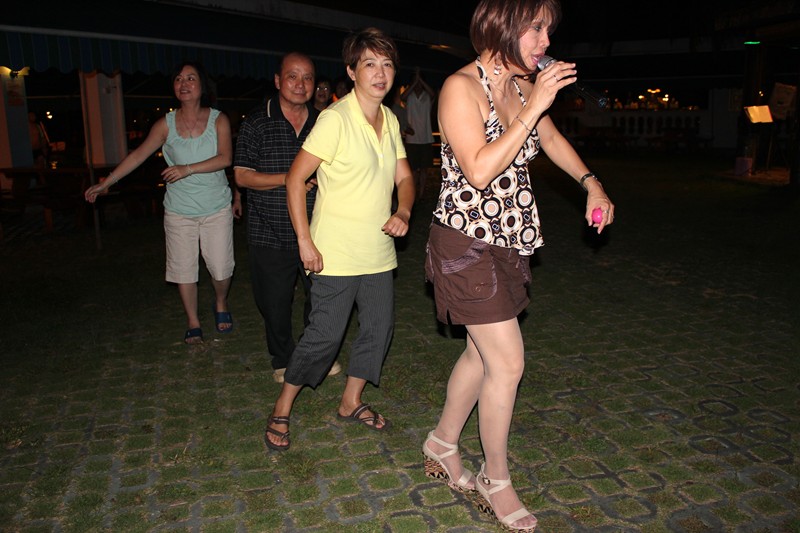晚上在度假村裡的菲律賓藉女樂師兼歌手