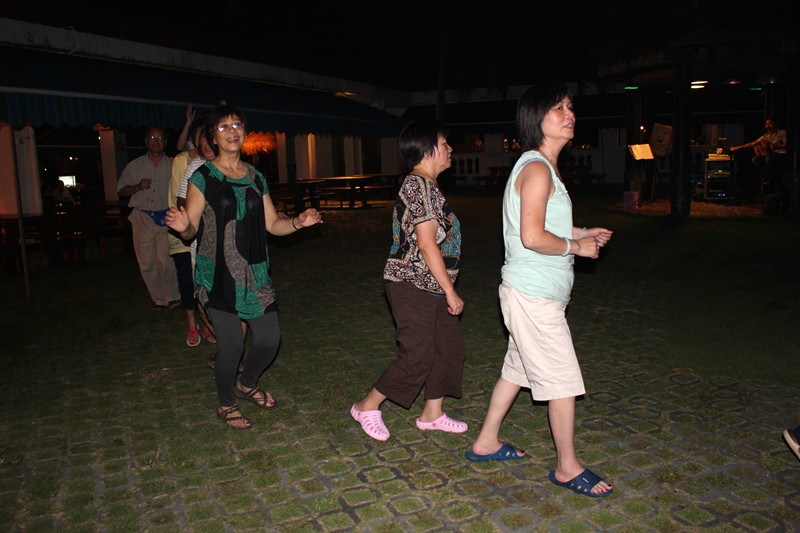 在草地上不能跳交際舞,只能在走廊上跳了。
